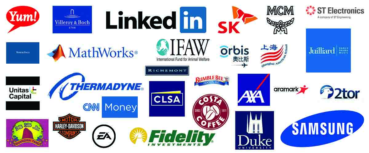 Apparel, Automotive, Chemicals, Construction, Consumer Electronics, Consumer Packaged Goods, Cosmetics, Education, Financial Services, Food & Beverage, Healthcare, Heavy Machinery, Hedge Funds, Hospitality, Luxury Goods, Media and Entertainment, Non-Profit, Pharmaceuticals, Private Equity, Retail, Technology, Travel and Leisure.